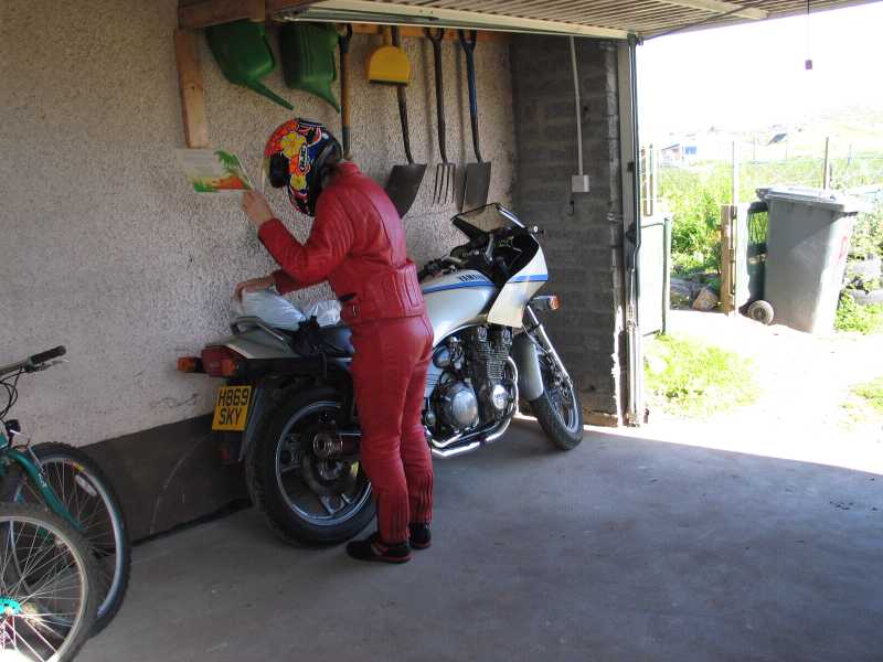Today (and last night) Mrs Pirie decided that she would overcome her fear of the overly large XJ900 and go for a trip. Last night went well, she was gone for hours and hours! The only part that she won't do is put the machine in the Garage as there is a tricky slippery slope to negotiate. But then, who needs to do that when they have a husband to park it up for them.