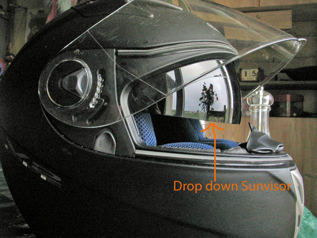 I decided on a CabergV2 Race. There would appear to be no info on the Caberg site regarding this model so perhaps it is UK specific? Anyway, I chose a matt black version and, I think the feature that sold this model to me was most definately the built in drop down Tinted visor. This is really useful (as well as cool) and is operated by a small slif=ding lever on the left side of the helmet, just behind the Main visor hinge. If the sun shines you drop down the black tint inner visor. When the sun goes away...up it goes.